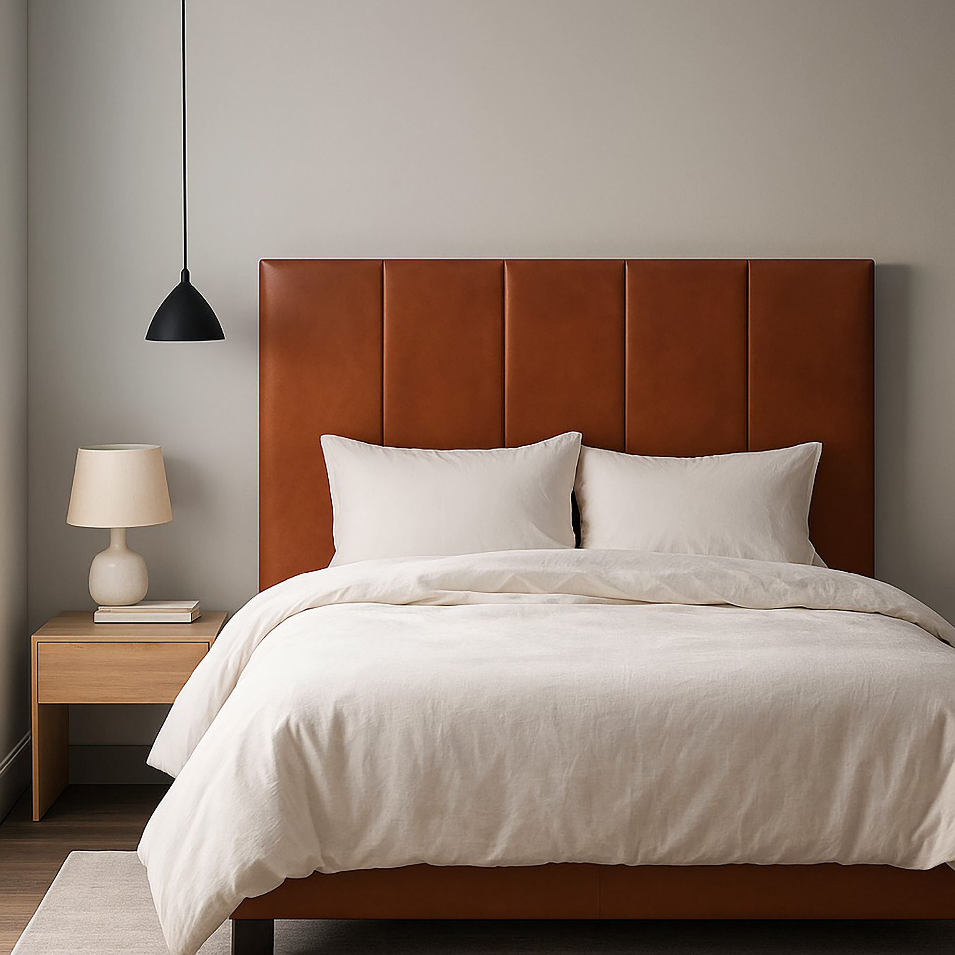 Este respaldo mural es ideal para camas king o queen, y su formato en secciones permite una instalación fácil y precisa directamente al muro, sin necesidad de estructuras adicionales. Perfecto para ambientes modernos, minimalistas o inspiración hotel boutique.