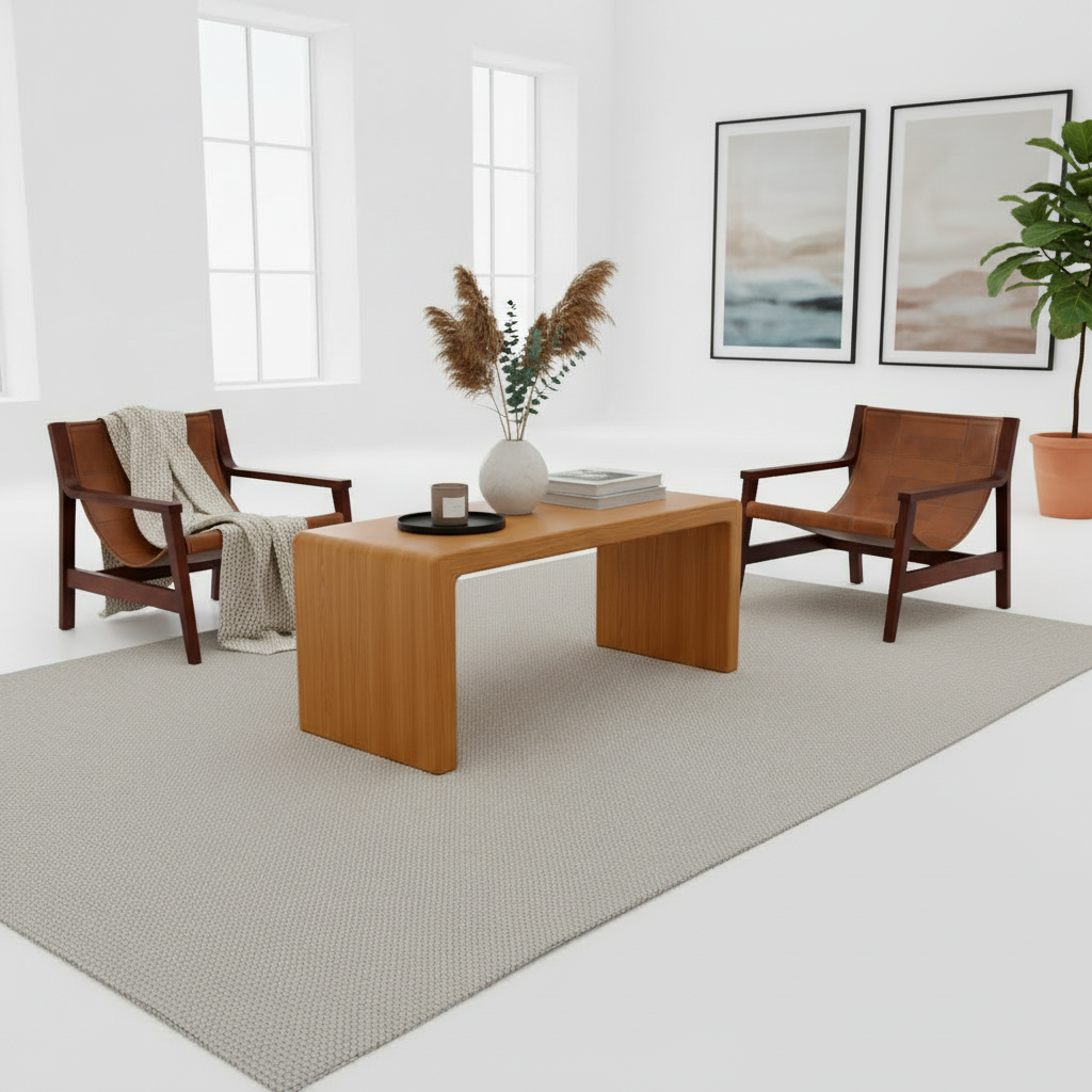 De líneas puras y proporciones equilibradas, la Mesa de Centro Rio Claro destaca por su diseño continuo en madera sólida, donde la estructura fluye sin interrupciones.