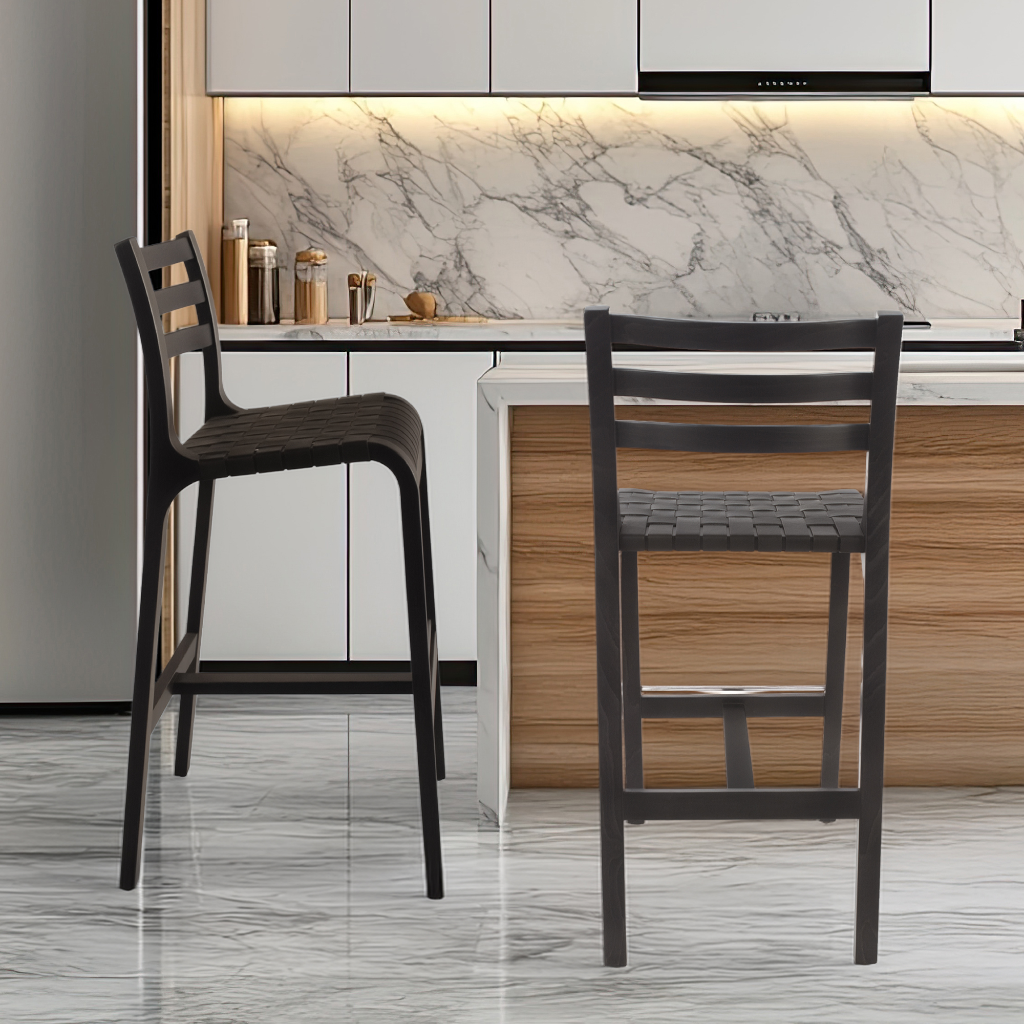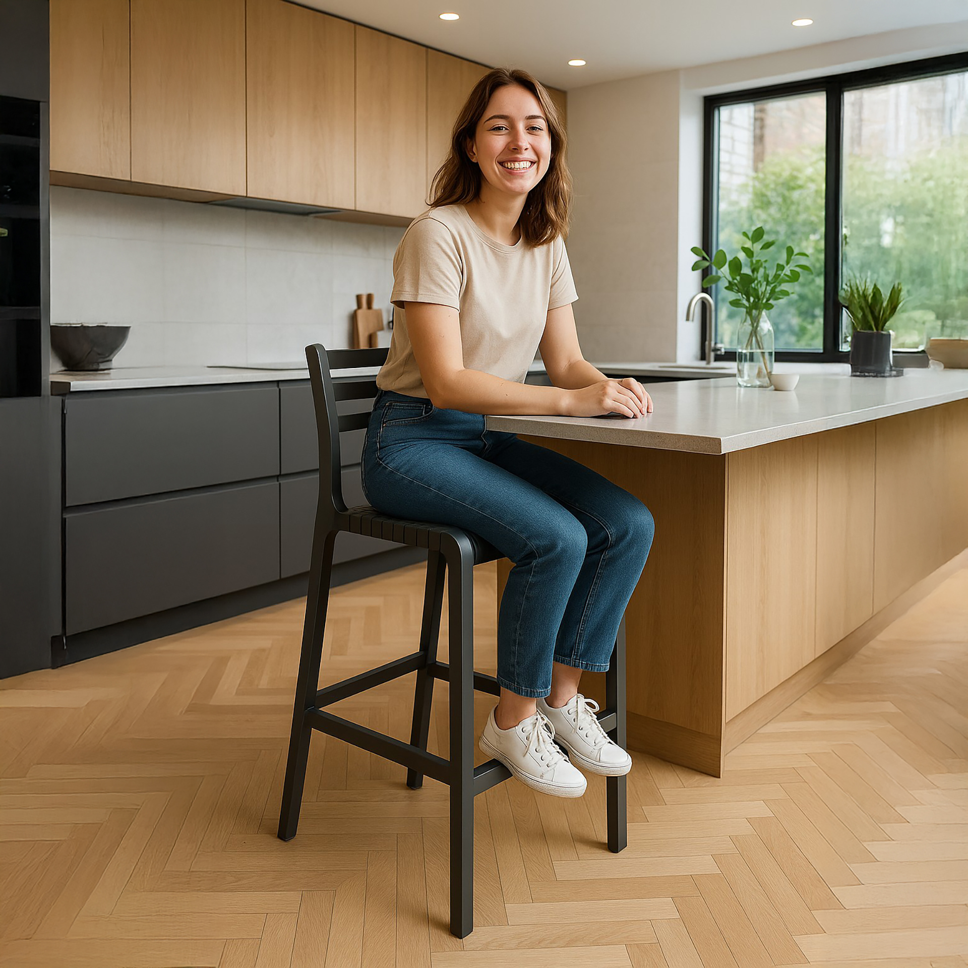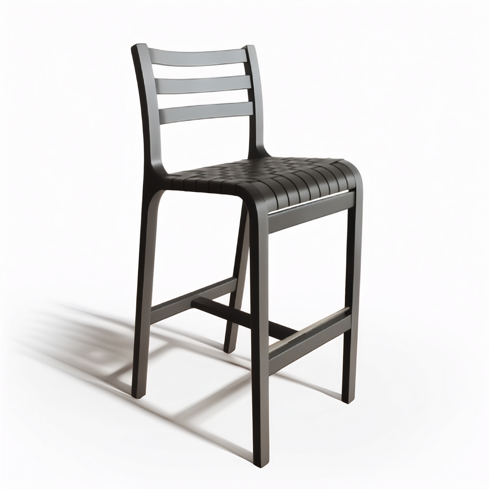 El Piso de Bar Cumbre combina líneas modernas con un aire cálido y acogedor. Su respaldo horizontal y su asiento de listones curvados transmiten solidez y simplicidad, logrando un equilibrio entre estilo y funcionalidad.