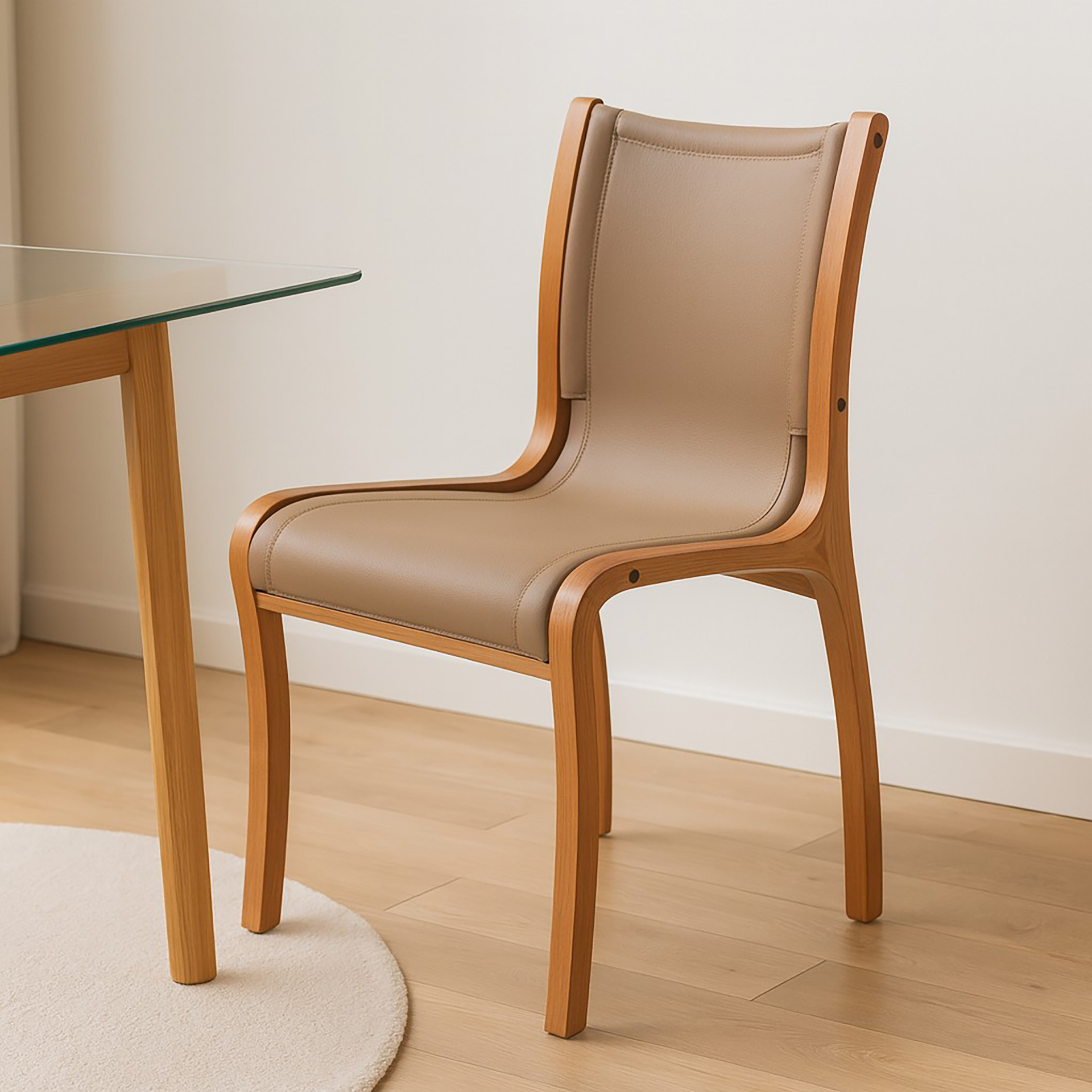 Silla Bilbao Respaldo Alto – Diseño Ergonómico en Madera Curvada y Cuero Natural