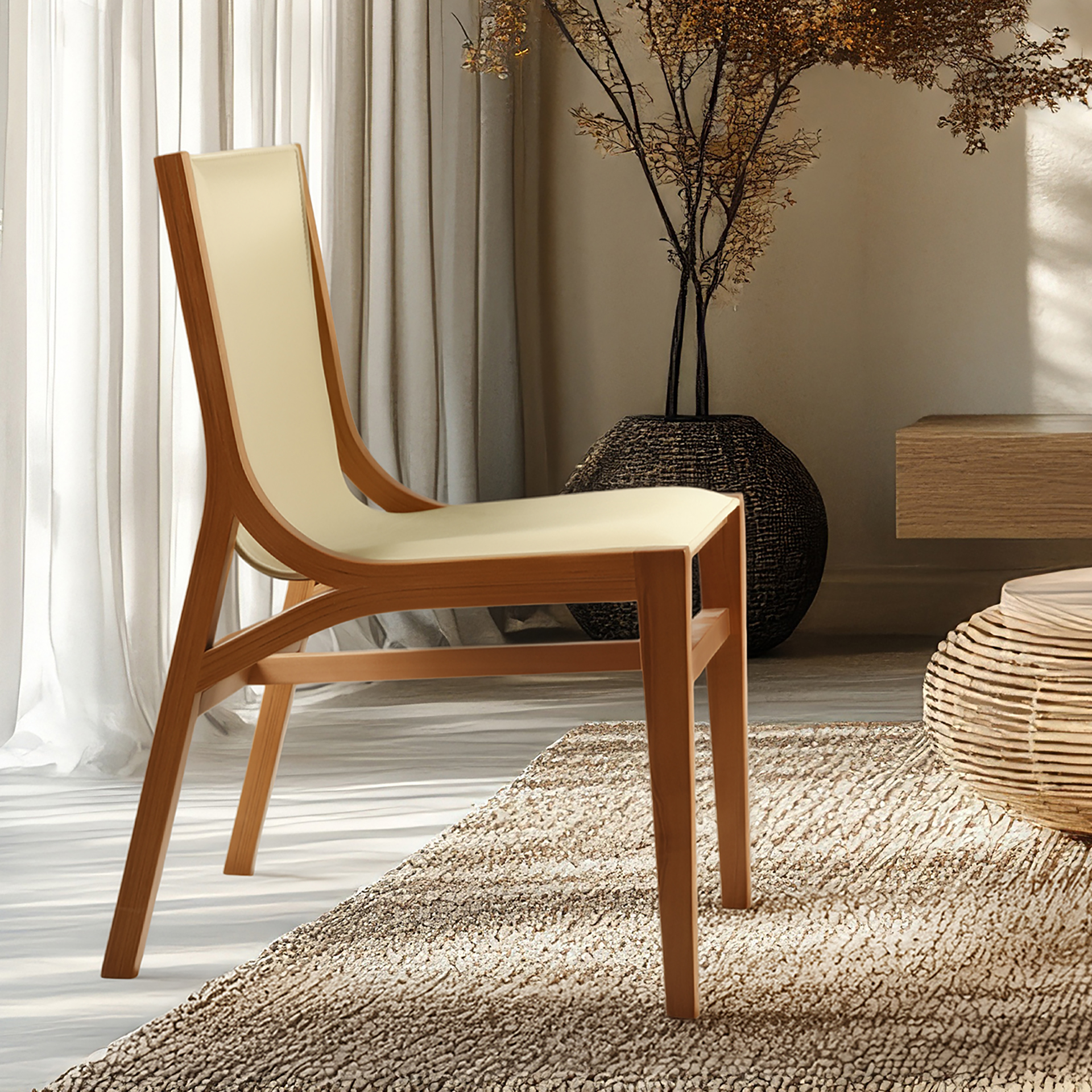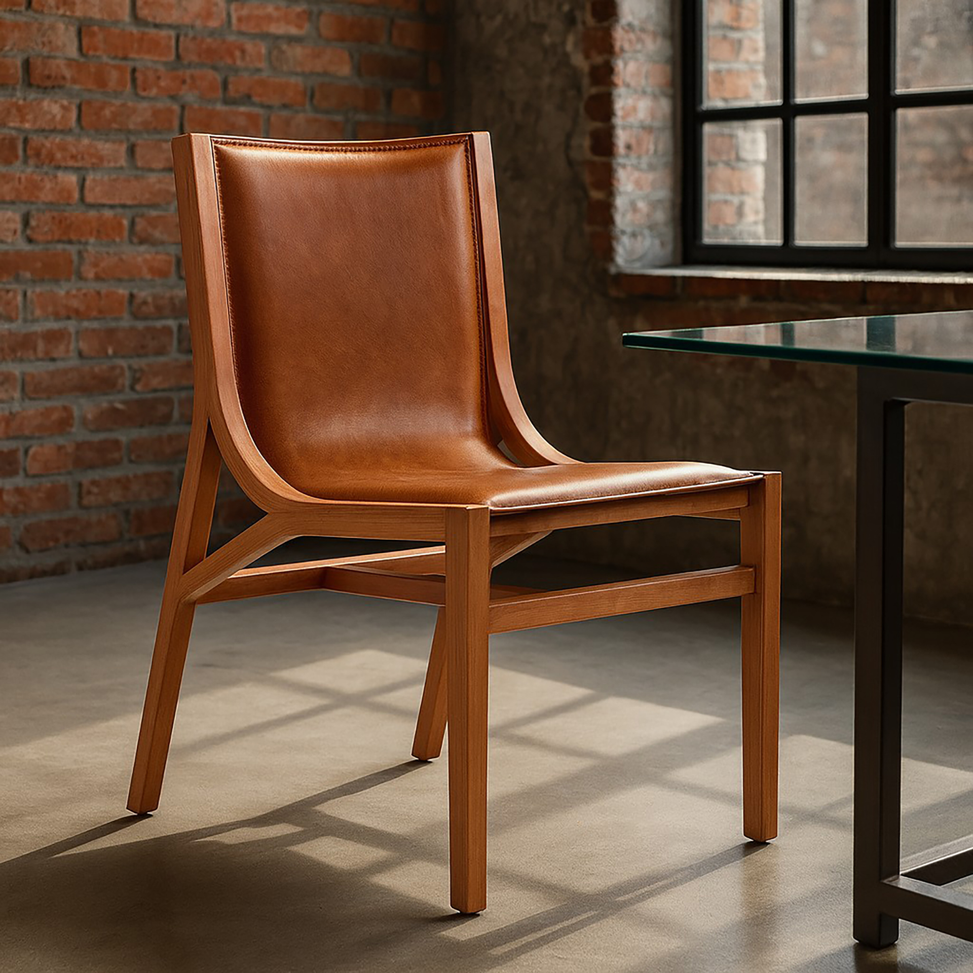 Silla Ferrara – Diseño Contemporáneo en Madera Maciza y Cuero Natural Estirado
