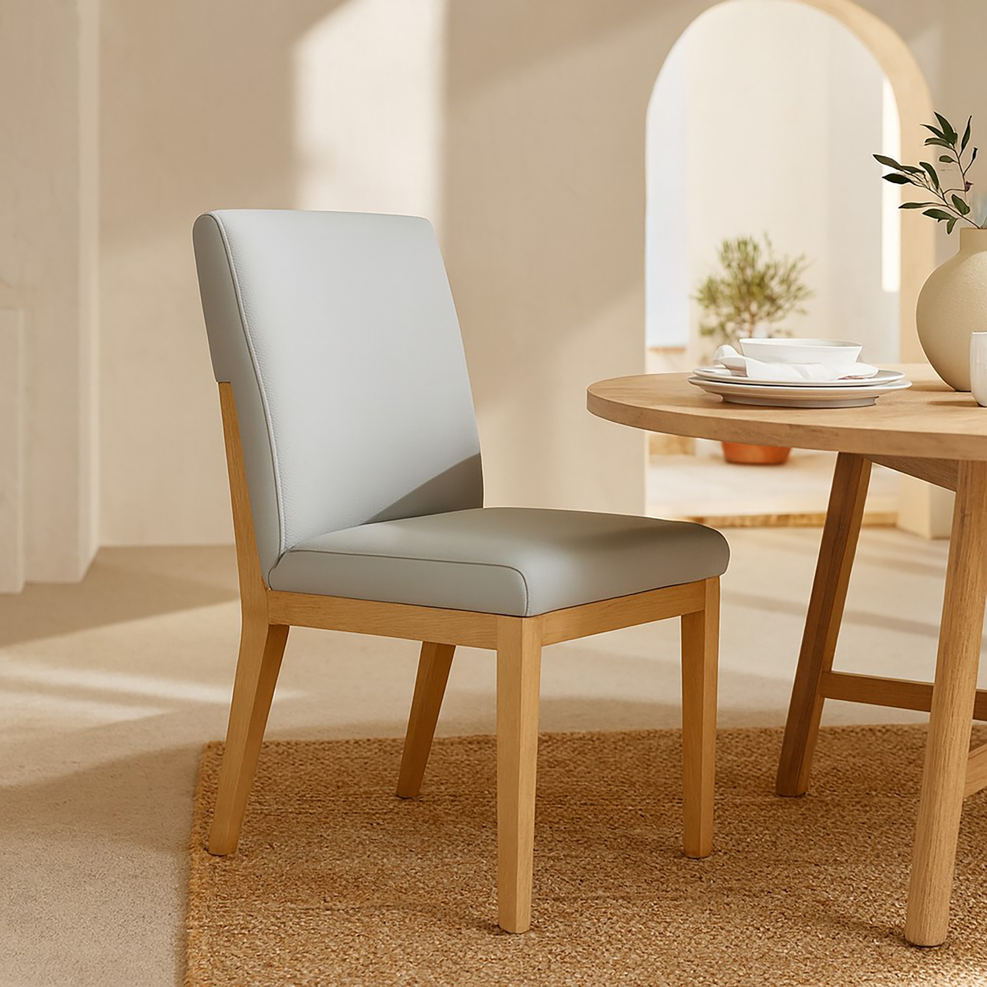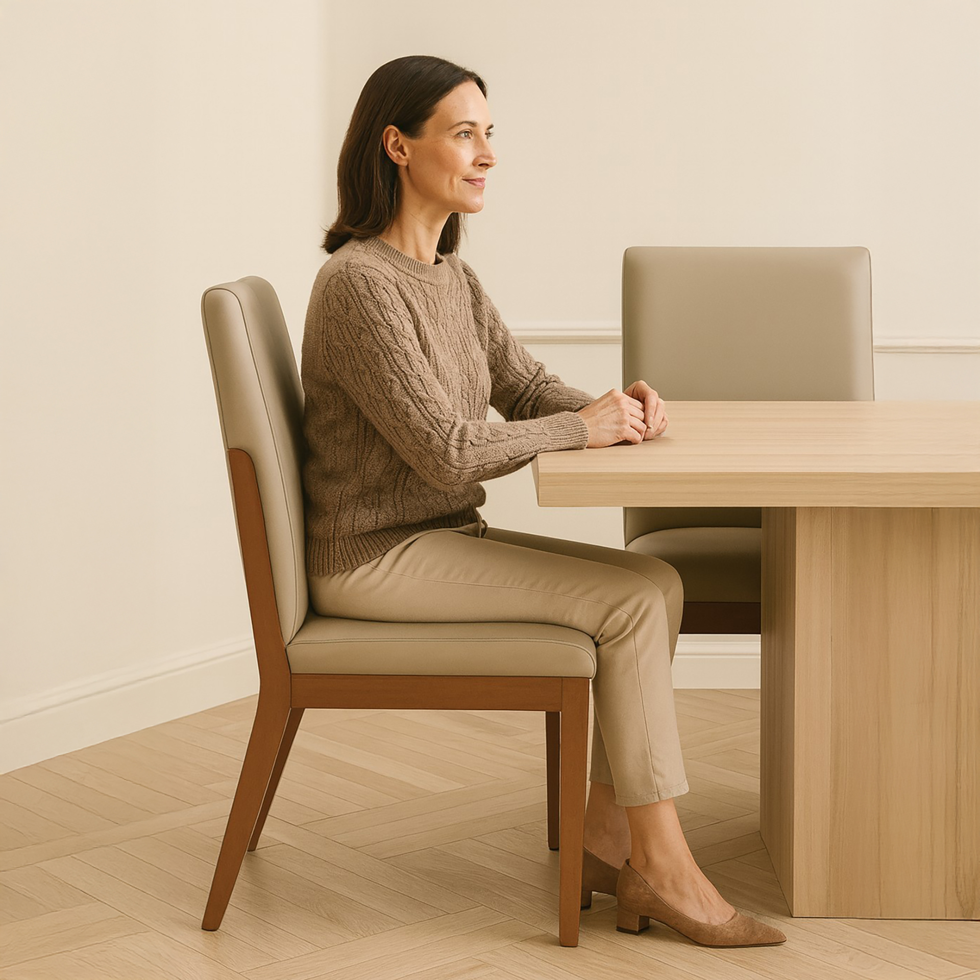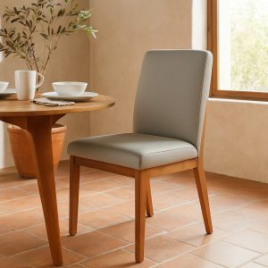 La Silla de Comedor Sevilla combina la solidez de la madera maciza con la calidez de un tapizado en cuero natural o textil de alta resistencia, ofreciendo una pieza versátil y elegante. Su diseño fusiona lo clásico con líneas modernas, logrando un equilibrio perfecto entre tradición y contemporaneidad.
