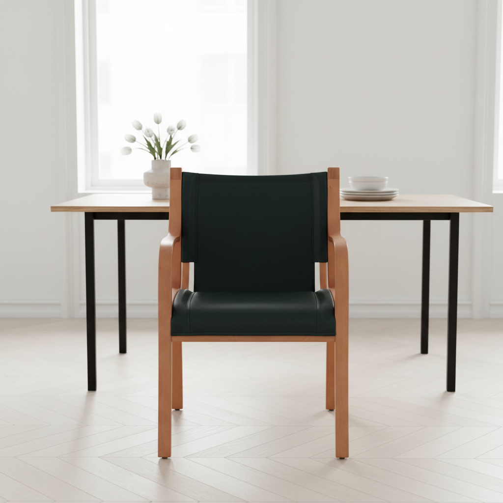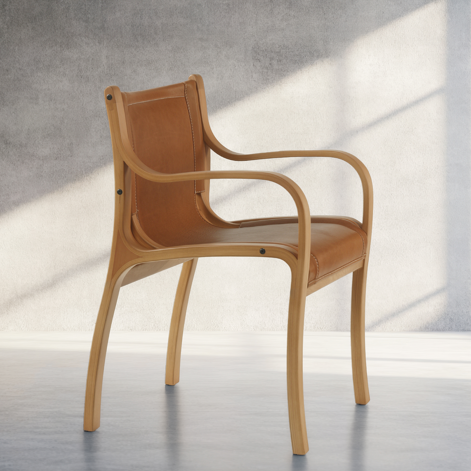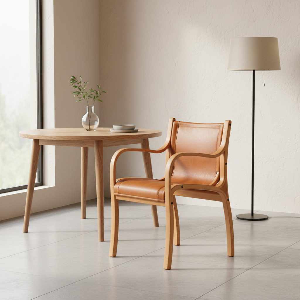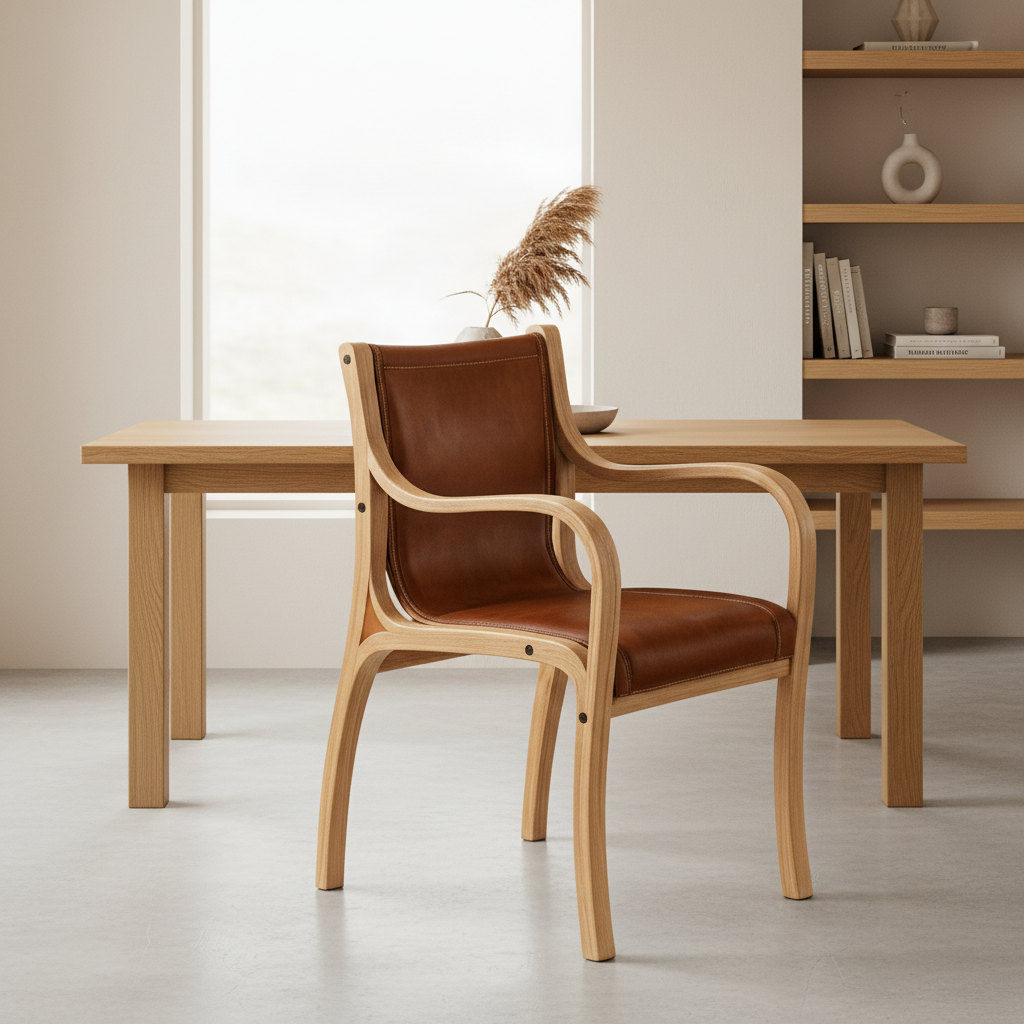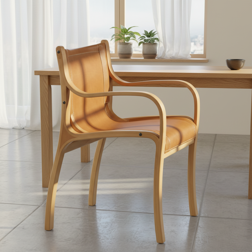 Sitial Bilbao – Silla con Brazos en Madera Curvada y Cuero Natural