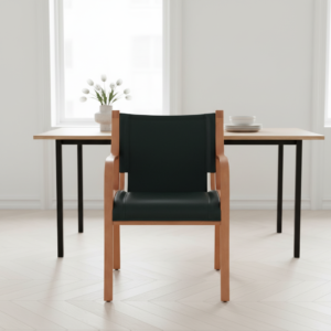 El Sitial Bilbao es la versión con brazos de nuestra reconocida línea Bilbao, diseñado para quienes buscan una experiencia de mayor comodidad y presencia. Su estructura en madera curvada laminada y sus apoyabrazos integrados ofrecen una postura más relajada y ergonómica, sin renunciar a la elegancia ni a la funcionalidad.