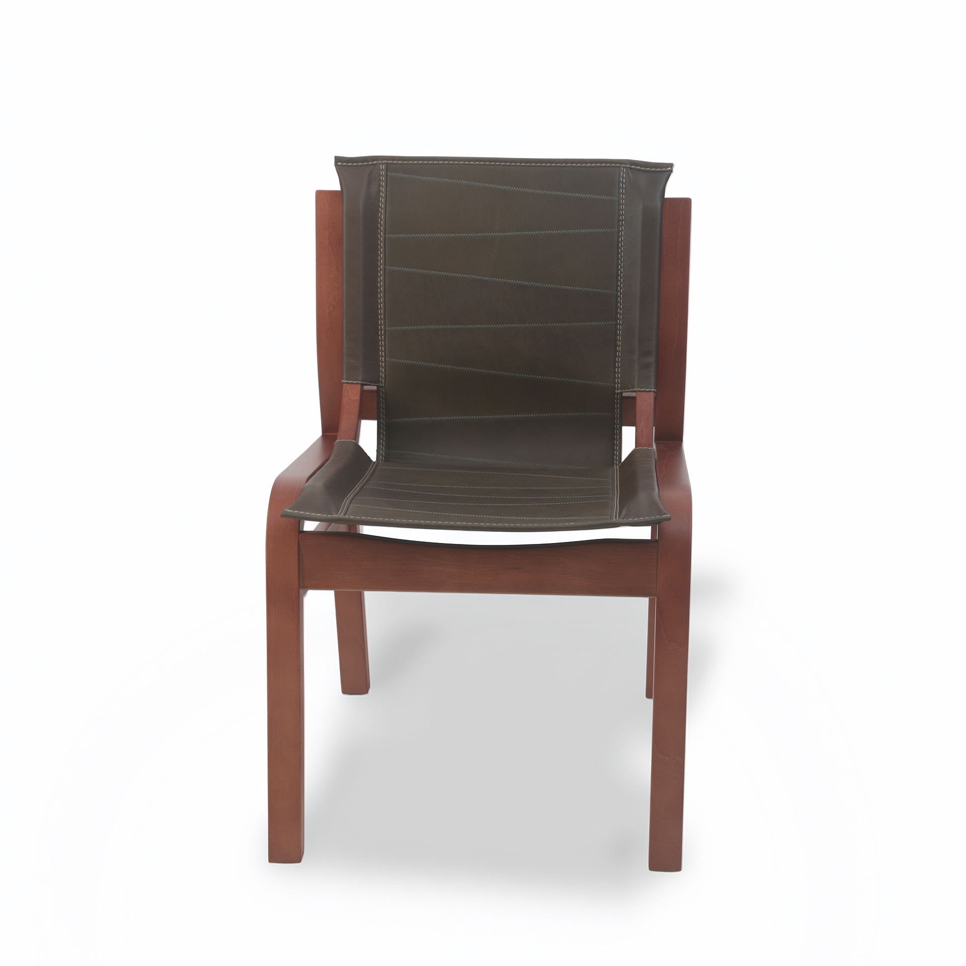 Silla Domo / Cuero Oliva Madera Caramelo /juego de 6 unidades