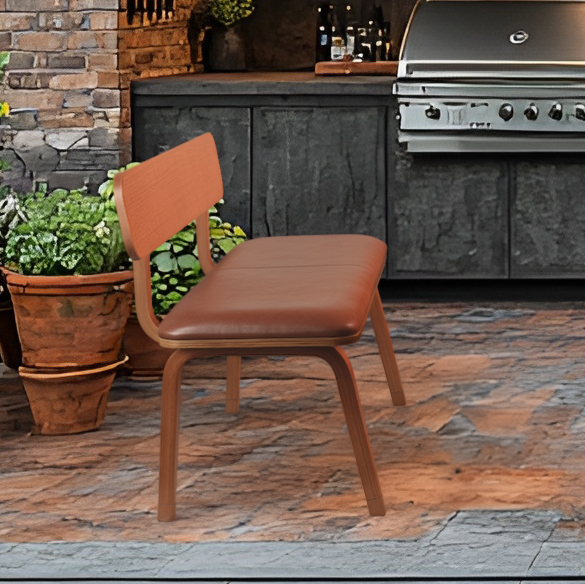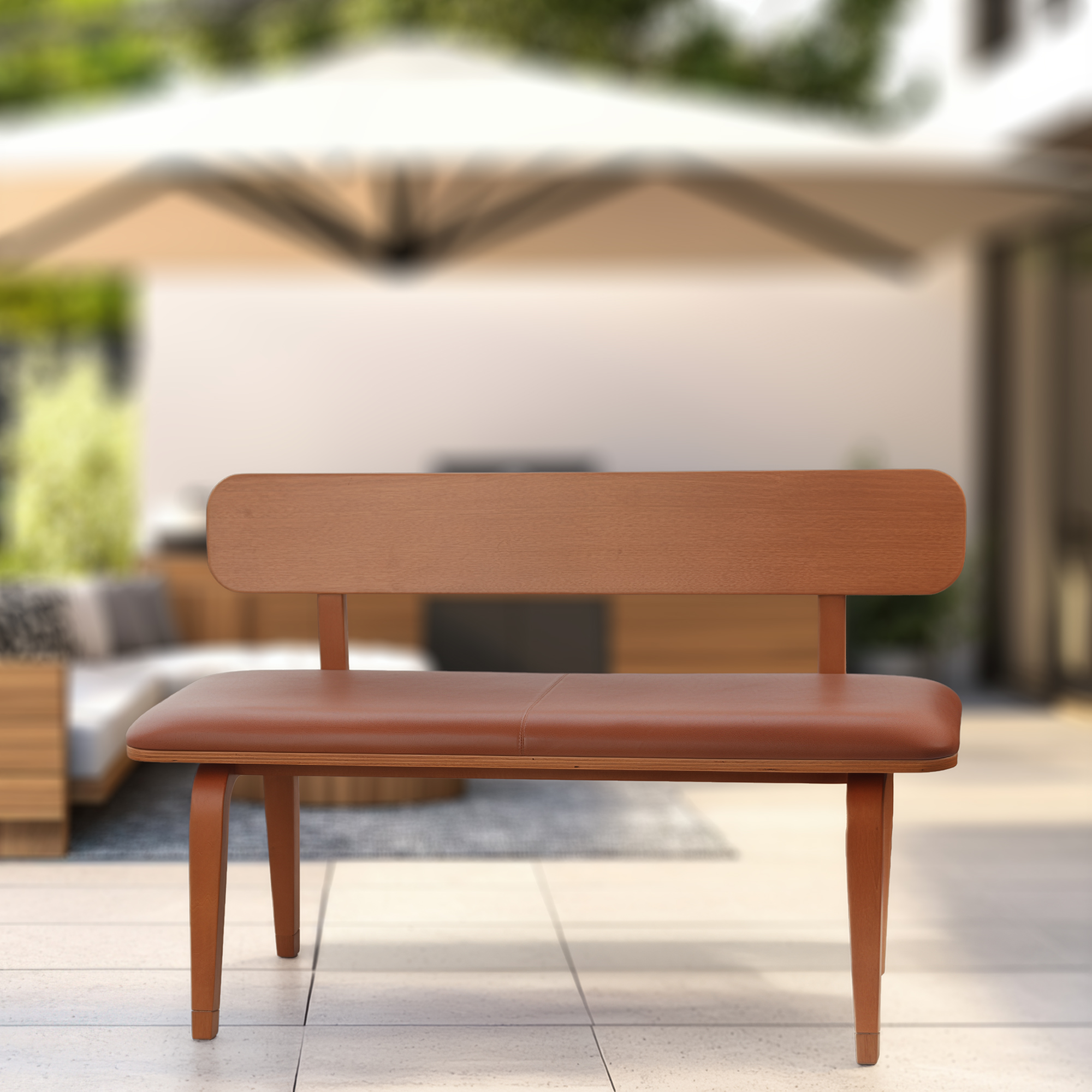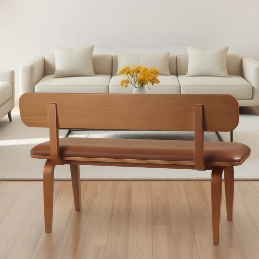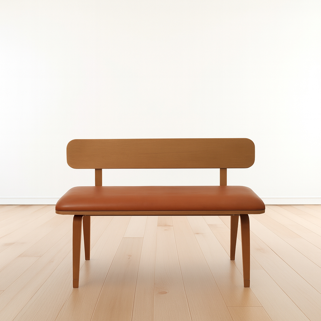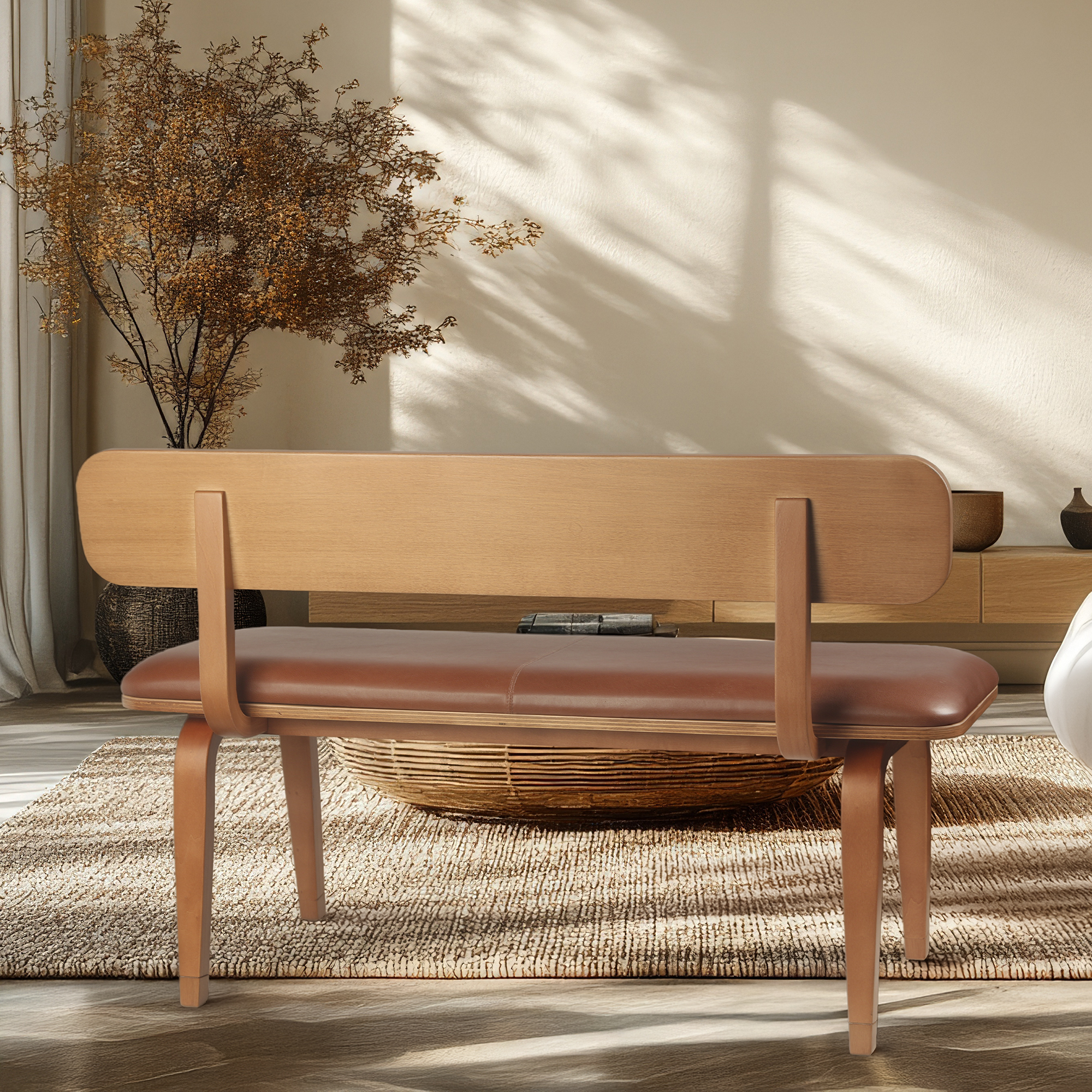 El respaldo recto y estilizado equilibra ergonomía y diseño, creando una pieza ideal para entradas, pasillos, dormitorios o comedores contemporáneos. Cada detalle está trabajado con un enfoque artesanal que resalta la nobleza del cuero y la madera, logrando una estética atemporal.