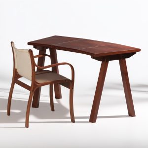 Escritorio Hermes Curvo – Madera y Cuero Natural