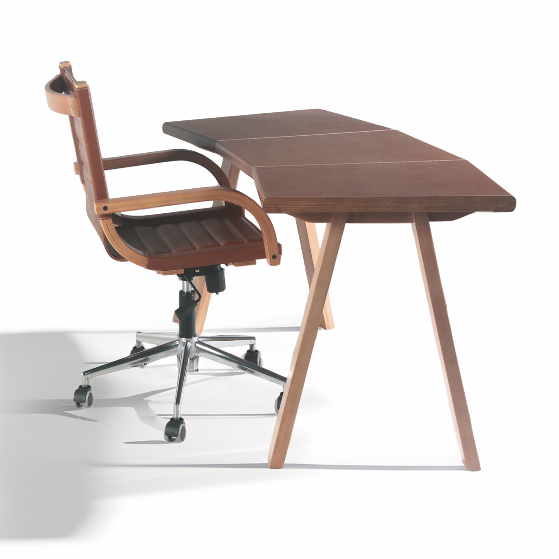 Escritorio Hermes Curvo – Madera y Cuero Natural