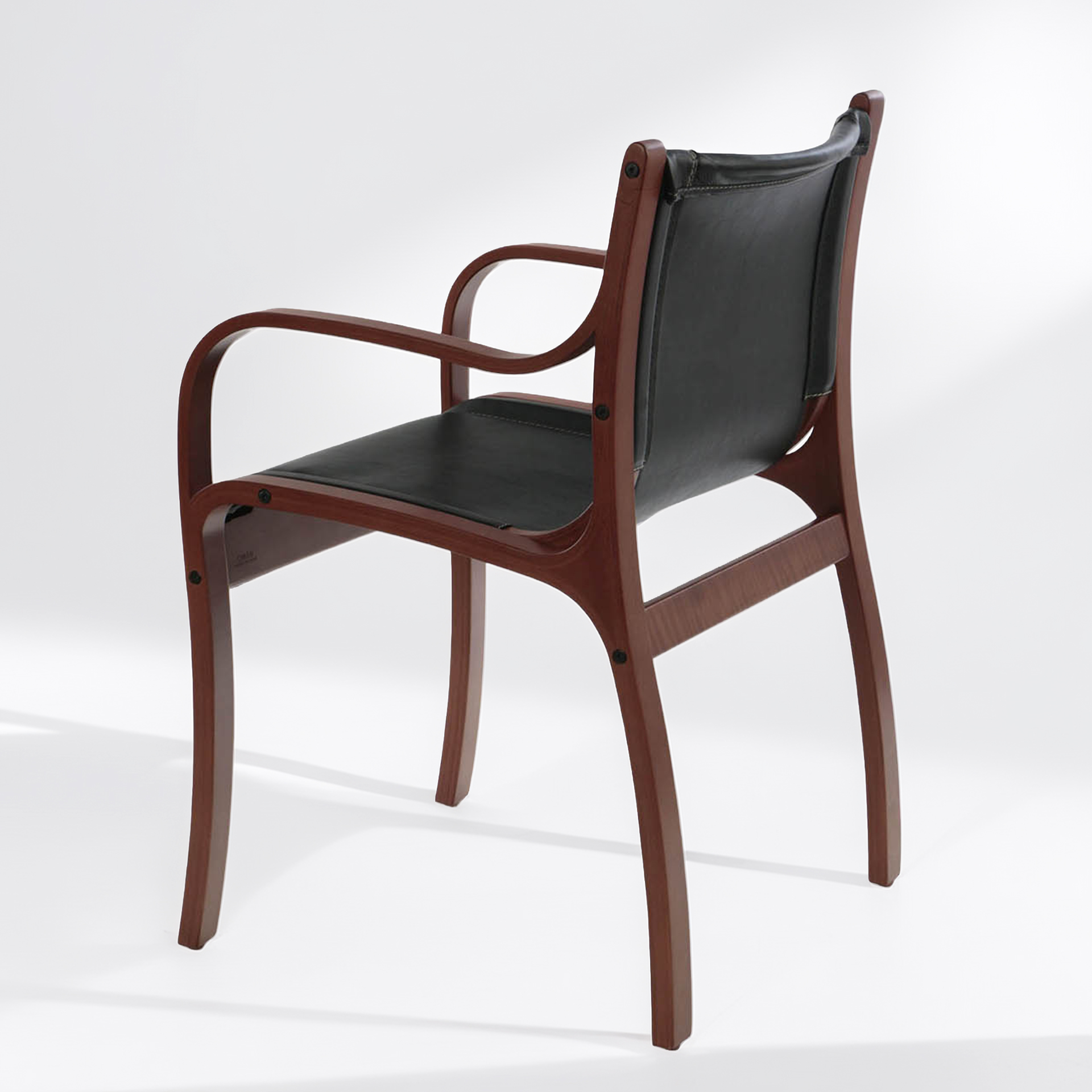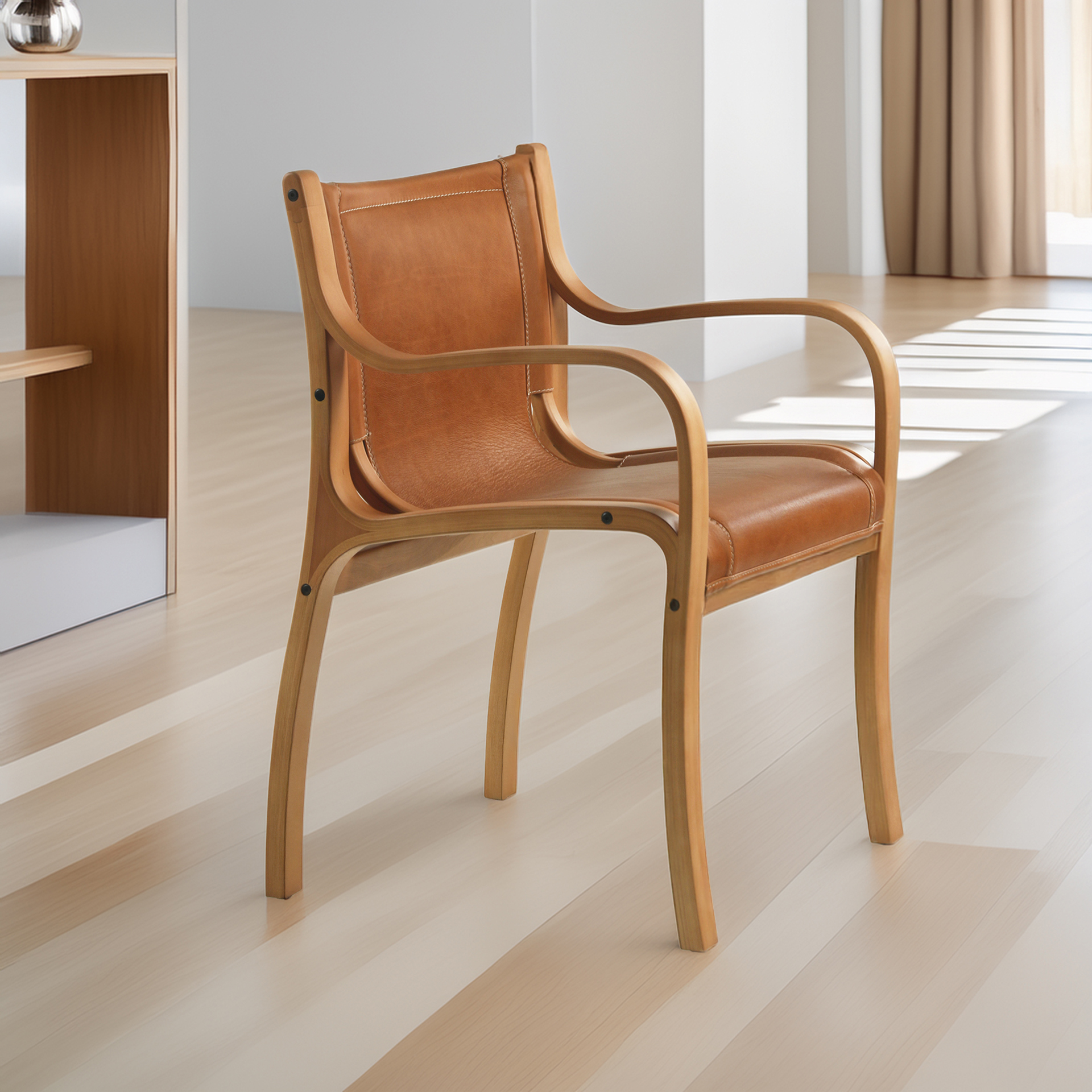 Sitial Bilbao – Silla con Brazos en Madera Curvada y Cuero Natural