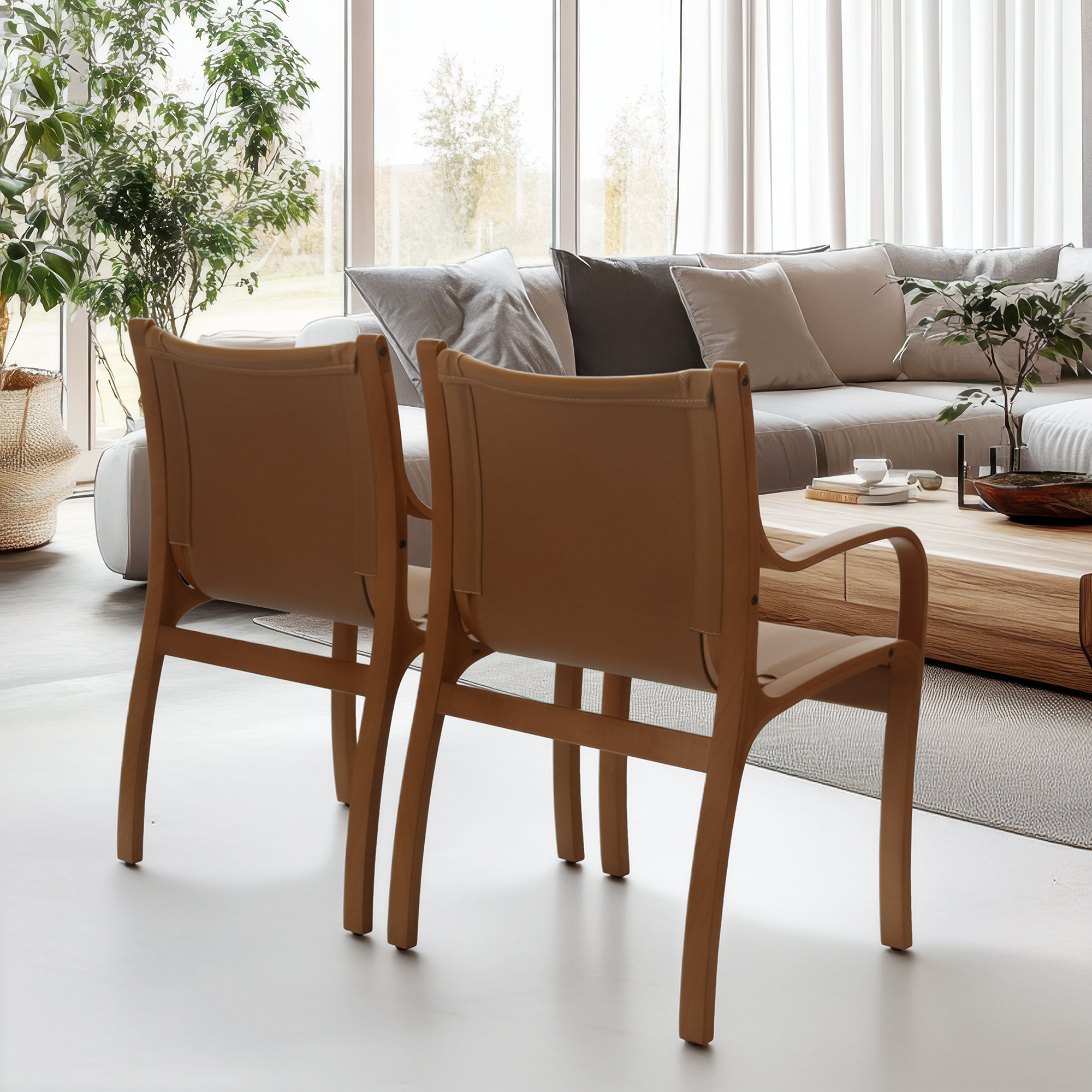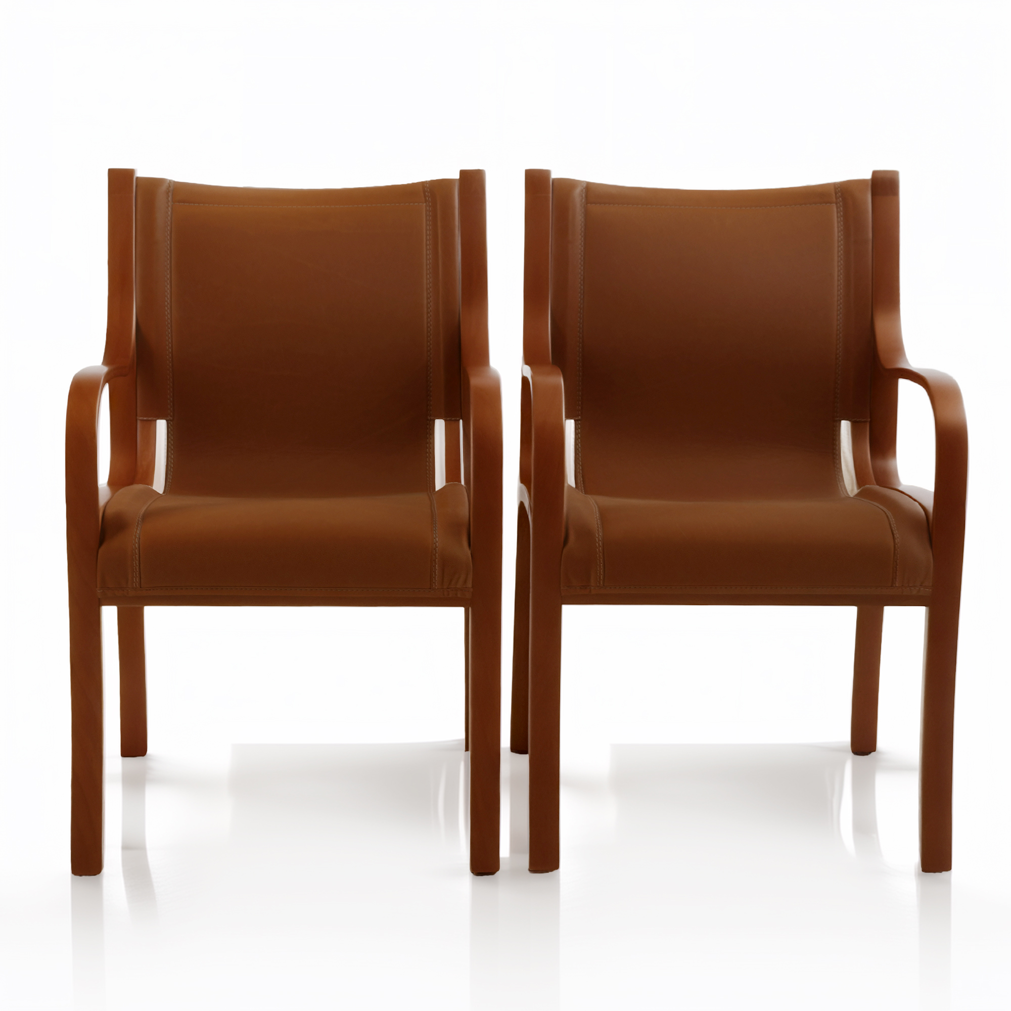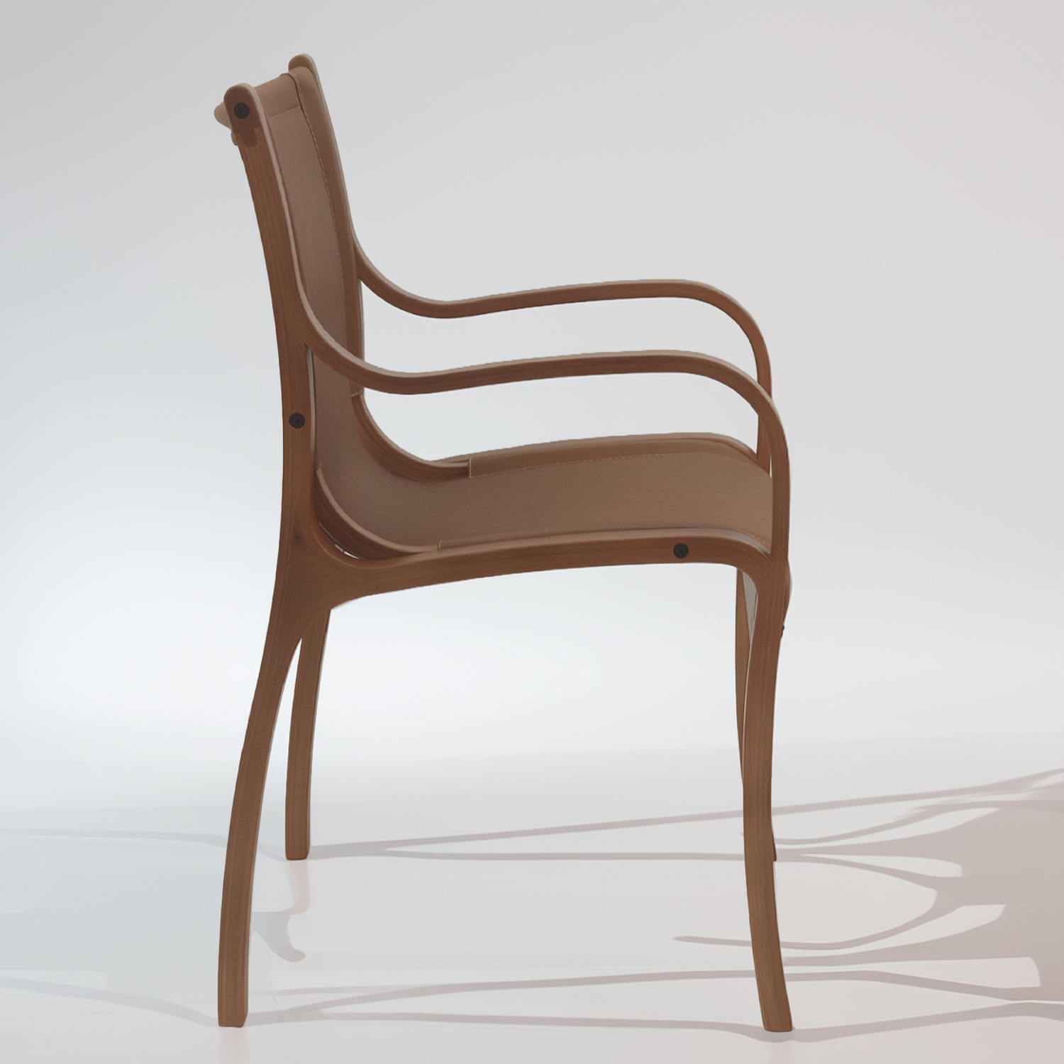 Sitial Bilbao Respaldo Alto – Silla con Brazos en Madera Curvada y Cuero Natural