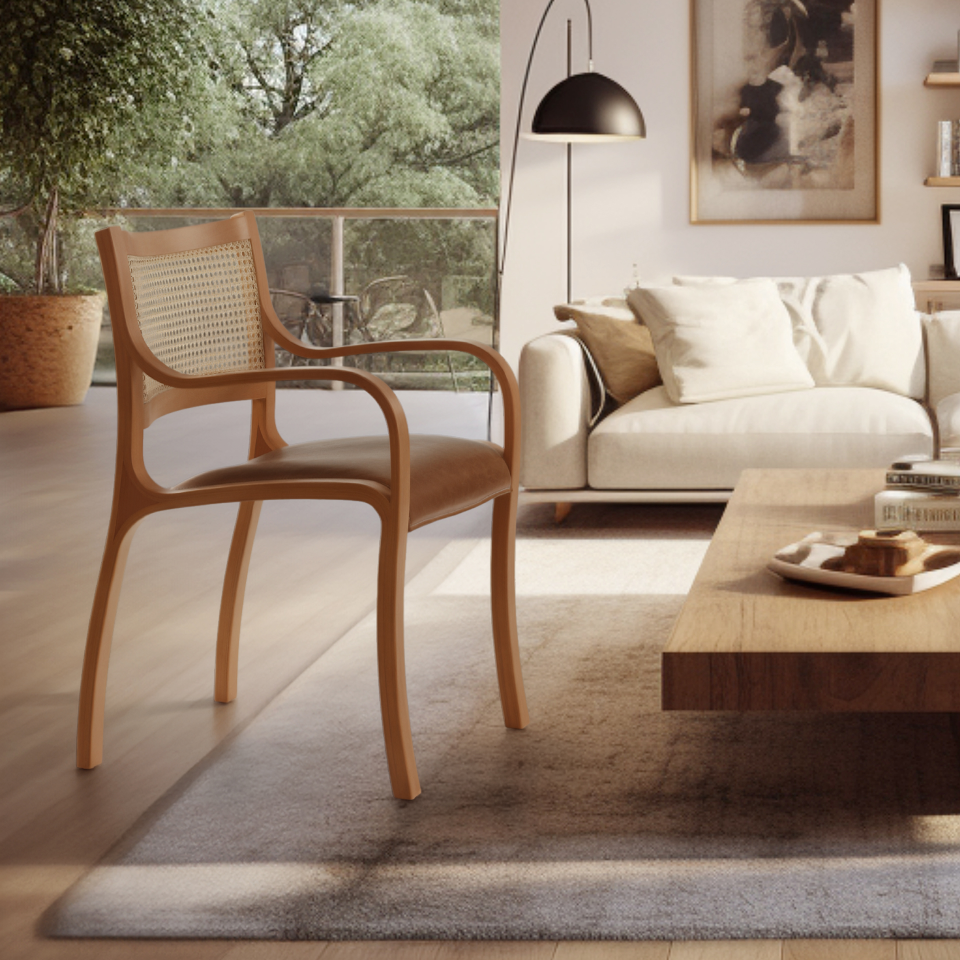 Diseñado para ofrecer comodidad duradera, este sitial combina lo mejor de la tradición y la modernidad, siendo perfecto para comedores clásicos, livings contemporáneos o cualquier espacio que valore la calidad y el estilo. El asiento tapizado aporta calidez y soporte, mientras que el respaldo enjuncado asegura frescura y una estética artesanal única.
