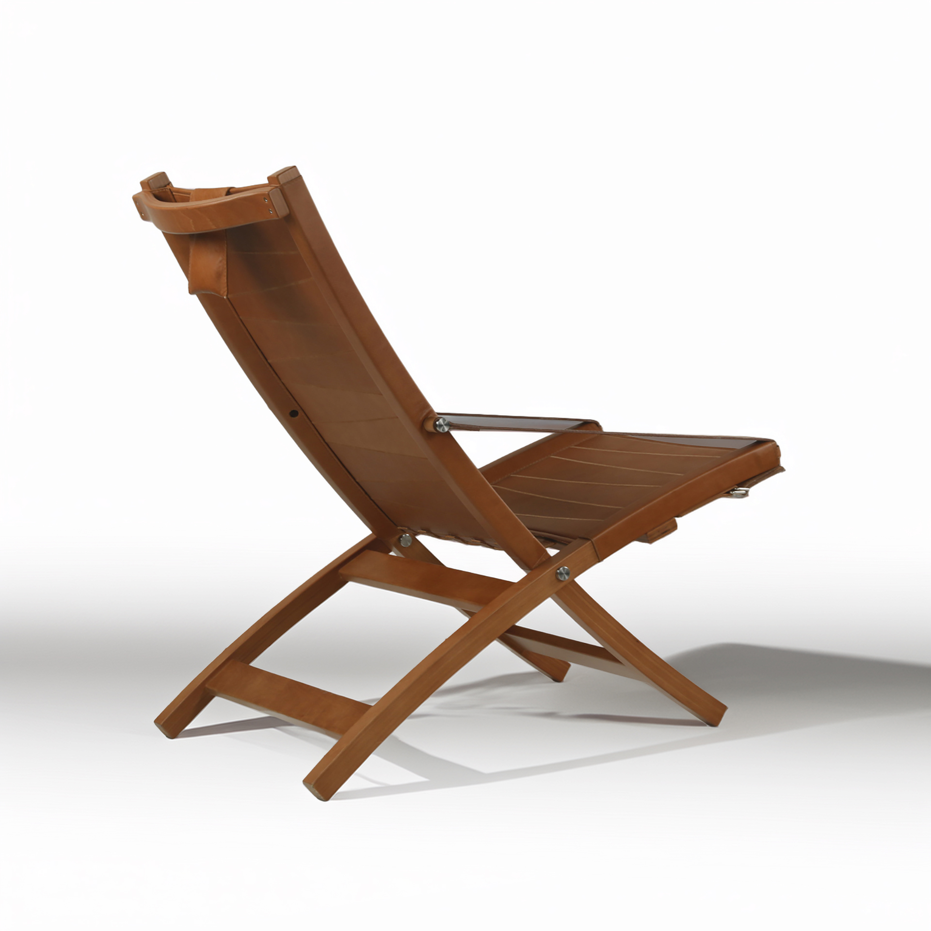 Reposera de cuero natural y madera curvada – Estilo y descanso elegante